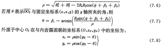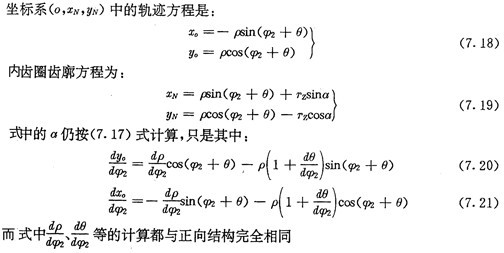 上式中,a為內(nèi)齒圈齒廓在M2點(diǎn)的法線與yN軸的夾角,它等于外滾子中心軌跡在O2點(diǎn)的切線正向與xN軸正向的夾角(圖7.3)