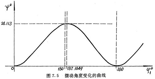 按上述公式得到齒廓曲線如圖7.1(b)所示。擺角
