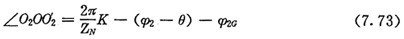 由式(7.71)及式(7.73)可得齒廓AB上與跨槽數(shù)為K的齒郭具有公法線的點(diǎn)的條件式為: