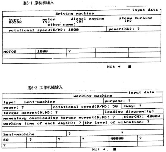 系統(tǒng)的輸入是專家系統(tǒng)的“開場條件”,人工設(shè)計(jì)的方法是由定貨單位向設(shè)計(jì)人員提供任務(wù)書(以口頭或書面形式),設(shè)計(jì)人員通過這些已知條件進(jìn)行設(shè)計(jì)工作。專家系統(tǒng)則要求設(shè)計(jì)人員(或由定貨人員)與計(jì)算機(jī)進(jìn)行“對話”,以便使專家系統(tǒng)了解原始的已知條件。事實(shí)上,由于受人工智能和計(jì)算機(jī)技術(shù)發(fā)展的限制,還不能同計(jì)算機(jī)形成視、聽對話,因而,圓柱齒輪減速器設(shè)計(jì)專家系統(tǒng)仍采用傳統(tǒng)CAD所采用的方法,即采用精確的輸入方式(或稱數(shù)據(jù)輸入方式而非語言物入方式)。