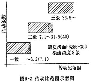 當(dāng)為調(diào)質(zhì)中硬度齒面HB286~360、7級精度時,價格按表6-15乘以系數(shù)0.55;