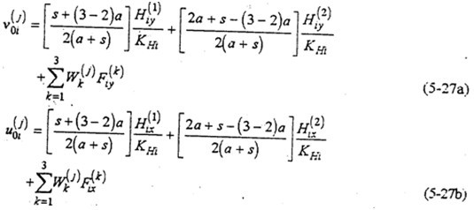 由式(5-18)、(5-19)、(5-22)、(5-23)就構(gòu)成三環(huán)減速器的動力分析補(bǔ)充方程。將它們與三環(huán)減速器的動力分析基本方程聯(lián)解,可以確定出的運(yùn)動副的動反力及齒板、軸等的變形角位移,隨轉(zhuǎn)角(或時間)的函數(shù)關(guān)系。各齒板、軸的角位移與轉(zhuǎn)角φ的關(guān)系可表示成: