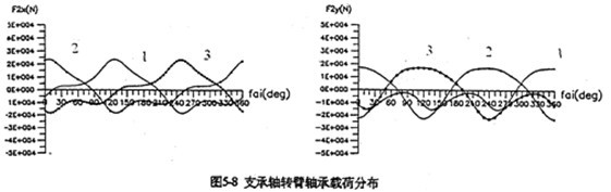 箱體軸承載荷的分布曲線如圖5-10、5-11、5-12的所示。
