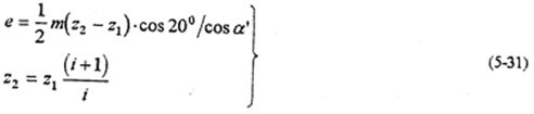 由上式知,當(dāng)齒數(shù)差Z2-Z1越小或傳動比i越大時,偏心距e越小;壓力角越大時,偏心距e越大,則選用的行星軸承尺寸大,齒板高速軸承孔徑也就大。圖5-17是傳動比、壓力角、以減速器行星軸承載荷的影響。由圖可見,傳動比的變化對減速器的動力性能影響極大;傳動比越大,則偏心距越小。由式(5-30)分析得,行星軸承載荷必須大。壓力角的變化,對行星軸承載荷影響小得多。