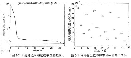 1.基于BP神經(jīng)網(wǎng)絡(luò)的高度非線性映射功能,利用第4章所建立起來的動力學(xué)分析模型,獲得了38組結(jié)構(gòu)設(shè)計(jì)變量和對應(yīng)的動態(tài)特性參數(shù)的神經(jīng)網(wǎng)絡(luò)訓(xùn)練樣本,通過訓(xùn)練,建立起了能夠?qū)崿F(xiàn)結(jié)構(gòu)設(shè)計(jì)變量與動態(tài)特性參數(shù)之間映射的三層BP神經(jīng)網(wǎng)絡(luò)模型,實(shí)現(xiàn)了圓柱正弦活齒減速器結(jié)構(gòu)設(shè)計(jì)變量與其動態(tài)特性參數(shù)之間的映射關(guān)系。從而建立了多目標(biāo)優(yōu)化設(shè)計(jì)的動態(tài)分目標(biāo)函數(shù);