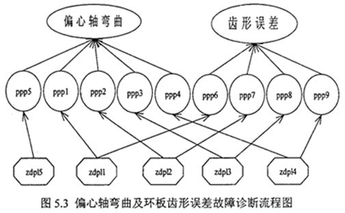 根據(jù)以上分析,本文用圖形化的智能故障診斷預(yù)報系統(tǒng)(INCON FIDPS), 建立了雙環(huán)減速器偏心軸彎曲及環(huán)板齒形誤差兩種故障的推理流程。如圖5.3 所示。