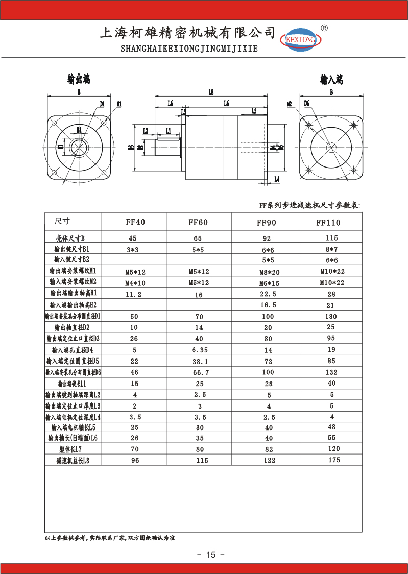 FF系列步進(jìn)電機(jī)減速機(jī):FF40、FF60、FF90、FF110、同軸式機(jī)座型號,速比:3-1000有20多個(gè)比速可選擇;分一、二、三級減速傳動;精度:一級傳動精度在8-10弧分,二級傳動精度在6-8弧分,三級傳動精度7-10弧分;等一千多種規(guī)格。