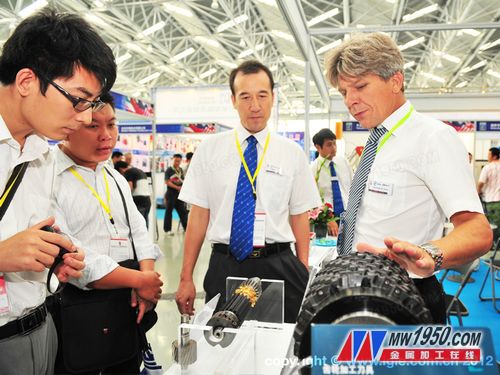 藍(lán)幟 T集團(tuán)FETTE公司技術(shù)人員現(xiàn)場(chǎng)為采購商講解齒輪剝削刀具的性能、作用