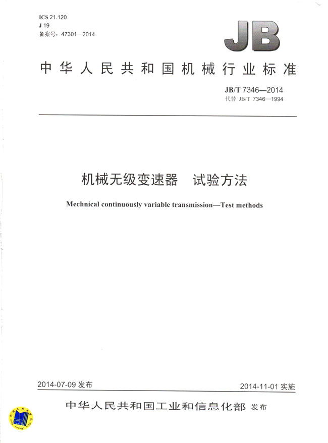 機(jī)械無級變速器試驗(yàn)方法(JB/T7346-2014)