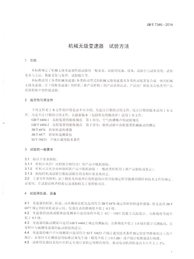 >>機(jī)械無級變速器試驗(yàn)方法(JB/T7346-2014)