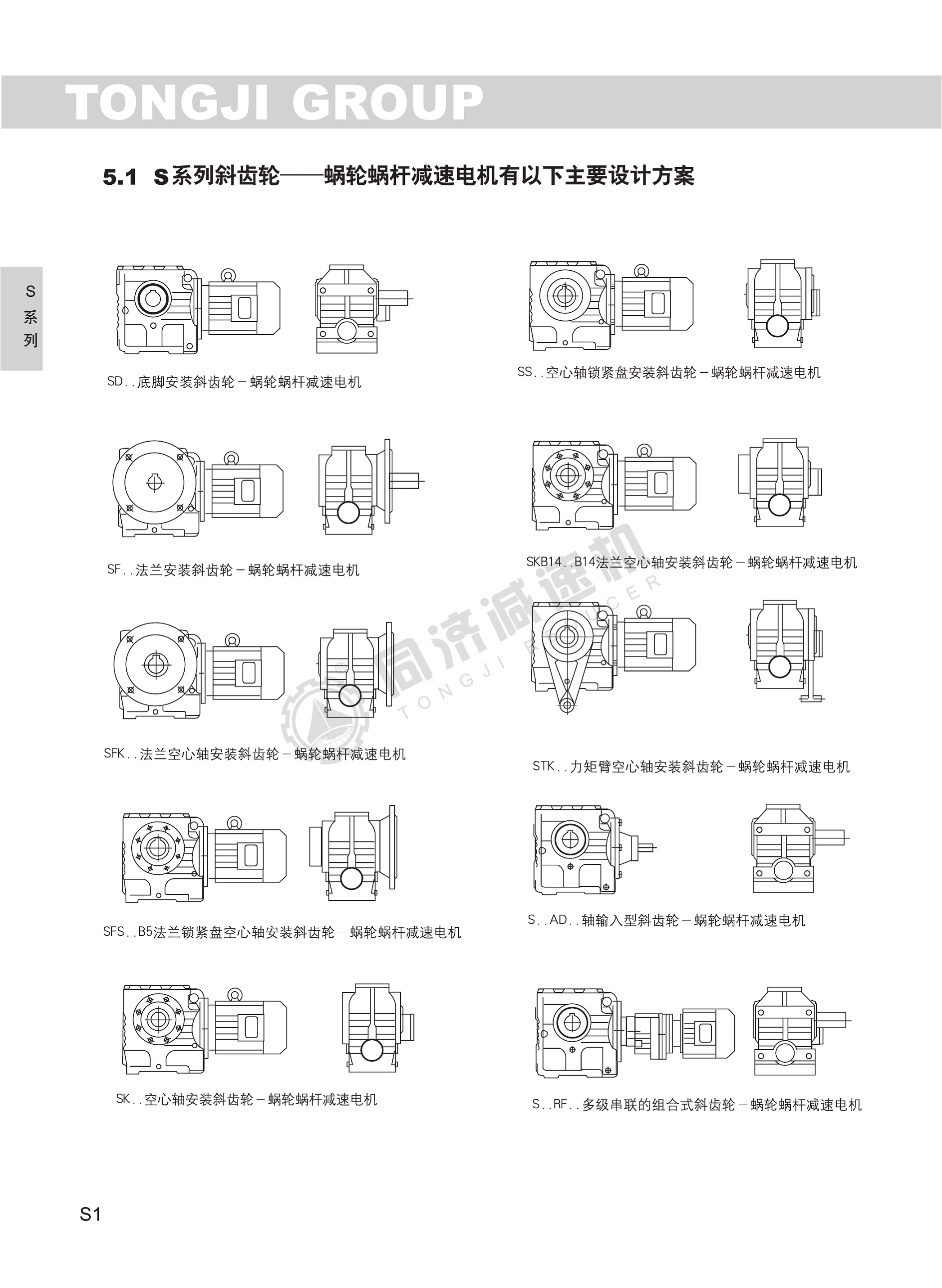 確保軸平行度和定位軸承要求,形成斜齒輪傳動總成的減速機配置了各種類電機,組合成