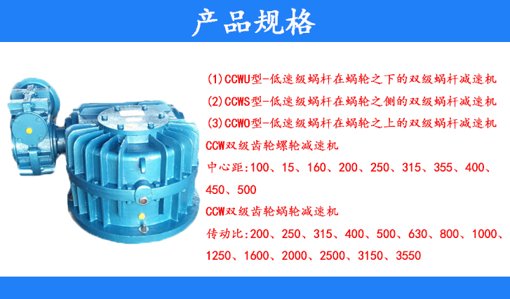 3)CCWO型-低速級(jí)蝸桿在蝸輪之上的雙級(jí)蝸桿減速機(jī);