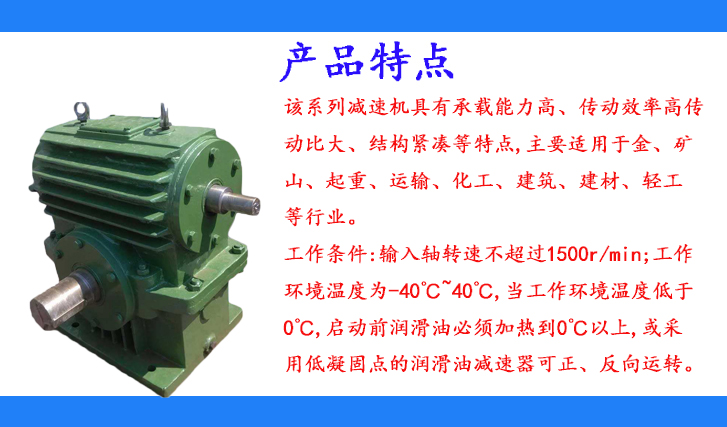 該系列減速機具有承載能力高、傳動效率高傳動比大、結(jié)構(gòu)緊湊等特點,主要適用于金、礦山、起重、運輸、化工、建筑、建材、輕工等行業(yè)。