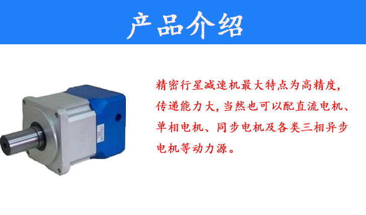 精密行星減速機(jī)最大特點(diǎn)為高精度,傳遞能力大,當(dāng)然也可以配直流電機(jī)、單相電機(jī)、同步電機(jī)及各類三相異步電機(jī)等動力源。