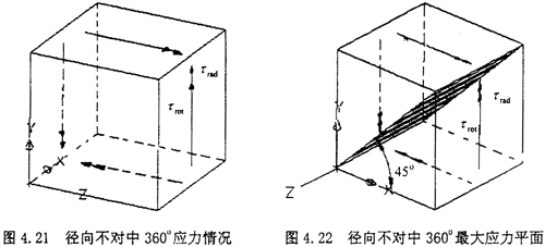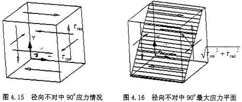 由圖示可知,此時(shí)單元體的受力其實(shí)是屬于純剪切狀態(tài),只是此時(shí)的剪切應(yīng)力為τrad與τrot的疊加。其分析過(guò)程與徑向不對(duì)中1800時(shí)的情況相似,只是這時(shí)τrad與τrot的方向相同,而在1800時(shí)方向相反,所以有