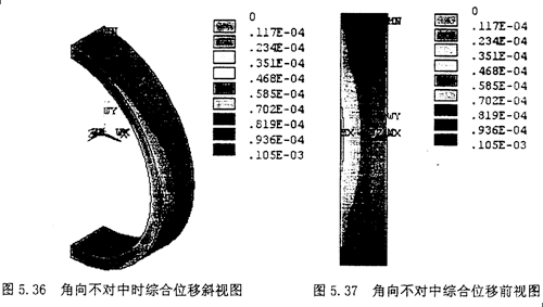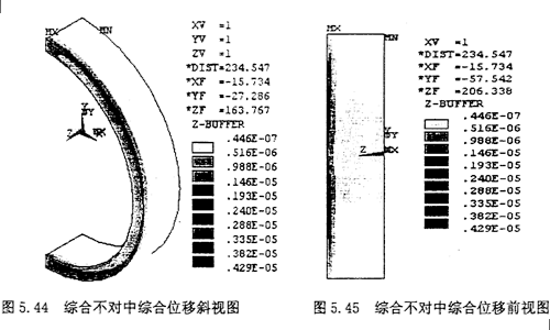 綜合不對(duì)中的模擬過程基本上類似軸向不對(duì)中,不同的是這時(shí)的位移變成了既有軸向的位移,還有徑向位移以及角向位移。其位移圖如圖5.42所示。