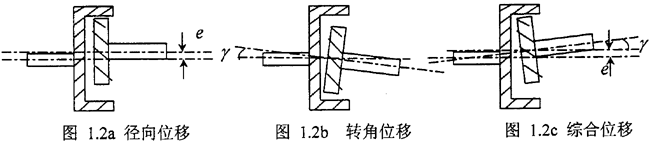 齒輪聯(lián)軸器的分類:一般按齒形分,當(dāng)外齒軸套在工作圓切平面內(nèi)的齒形是直線時(shí)稱為直齒聯(lián)軸器;當(dāng)外齒軸套在工作圓切平面內(nèi)的齒形是鼓形時(shí)稱為鼓形齒聯(lián)軸器,另外還有其它分類方法。由于鼓形齒輪聯(lián)軸器對(duì)安裝誤差不敏感在使用中內(nèi)外齒輪允許較大的偏心(其偏心主要有以下三種形式圖1.2a 、1.2b 、1.2c ) ,因此應(yīng)用比較廣泛。本文主要對(duì)鼓形齒輪聯(lián)軸器的特性進(jìn)行研究。