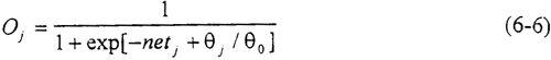 其中Wji為隱層的節(jié)點j與輸入層的節(jié)點i之間的連接權值,θj為隱層節(jié)點j的閥值,而f為節(jié)點的激勵函數(shù),可采取如下單調(diào)遞增的激勵函數(shù):