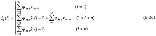 對(duì)(6-30)式求導(dǎo)或做累減還原處理,可得原始時(shí)間序列{xt}的預(yù)測(cè)公式: