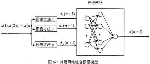 圖6-7中,神經(jīng)網(wǎng)絡(luò)的輸入為p種預(yù)測(cè)方法(包括AR、ARMA、回歸、灰色和直接神經(jīng)預(yù)測(cè)等模型)的輸出
