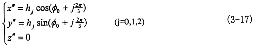 由式(3-14)則有小桿在滑道中的滑動位移即為坐標z′值,由于三小桿的滑動位移是相同的,可取其中之一進行表示,令h1為其位移量則可表示為:
