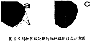 剛性區(qū)域的處理是基于小變形理論,通過這種處理,單個構(gòu)件的自由模態(tài)頻率會上升,只有通過這種處理可以在ADAMS中進行模態(tài)疊加和模態(tài)綜合,得出系統(tǒng)的固有頻率。其處理的方法是根據(jù)構(gòu)件間的不同的運動副連接形式,用點質(zhì)量單元上的節(jié)點(有時物體上自己的節(jié)點也可,不一定非要再建立質(zhì)量單元)和實體上相應的節(jié)點進行耦合,形成主節(jié)點和從節(jié)點關系,構(gòu)成剛性區(qū)域。其連接形式如圖6-5,在此圖的連接形式中,a圖的連接形式可以傳遞所有載荷形式,是一種推薦的連接方式;c圖中主節(jié)點僅同單個從節(jié)點相連傳遞的載荷形式有限,不合適選用。