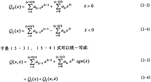 2,將擬合得到的各冪函數(shù)多項式奇、偶次項分開寫成(3-5)式形式并作對應的曲線圖,如圖3-2(見34頁)所示,這樣就將恢復力分解成了單值非線性函數(shù)曲線和雙值的非線性函數(shù)閉合曲線,由此得到了對應的
