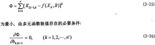 已知K2i-1 (A)是關(guān)于自變量X=[A,A2,…An′]T和待定參數(shù)B=[ b0,2i-1,b1,2i-1,…,bn′,2i-1]T的形式已知的函數(shù)(3-13),簡(jiǎn)寫成: