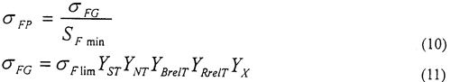 式中:σFG——計(jì)算齒輪的彎曲極限應(yīng)力,N/mm2;