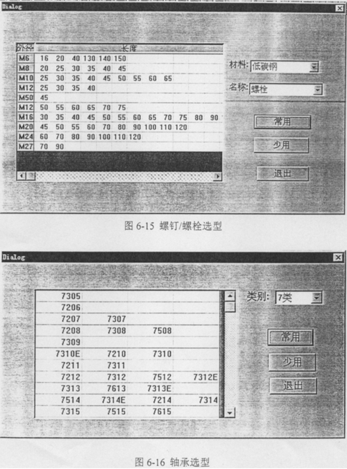 針對(duì)企業(yè)的實(shí)際需求,在庫(kù)存-設(shè)計(jì)模塊,控制設(shè)計(jì)人員對(duì)螺釘/螺栓(見(jiàn)圖6-15)和軸承(見(jiàn)圖6-16)的選型。盡可能減少零件的庫(kù)存量,從而達(dá)到合理利用企業(yè)的資源。
