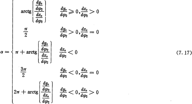 上式中,α為內(nèi)齒圈齒廓在M2點(diǎn)的法線與yN軸的夾角,它等于外滾子中心軌跡在O2點(diǎn)的切線正向與xN軸正向的夾角(圖7.3)