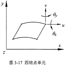 由上述分析可知:均載環(huán)離散成八個對稱的環(huán)弧段,因此均載環(huán)總體剛度的計算歸結(jié)為求解其離散的環(huán)弧段的剛度。本章利用I-DEAS分析軟件計算內(nèi)、外表面各均勻分布八個凸臺的輸入、輸出軸彈性均載環(huán)的離散環(huán)弧段的剛度,從而得到均載環(huán)的總體剛度。對于圖3-15所示的離散環(huán)弧段,內(nèi)凸臺的受力沿+x方向,并且在沿軸向方向上均勻分布,所以只需考慮xy平面內(nèi)的形變分量和位移分量即可,可以認(rèn)為是平面應(yīng)力問題。在單元選擇上,選用“平面應(yīng)力問題”中的四結(jié)點單元,定義單元的四結(jié)點厚度與彈性均載環(huán)的寬度相一致。四結(jié)點單元如圖3-17所示。