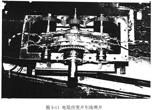本實驗采用日本KYOWA公司生產(chǎn)的柵絲長度為0.2mm,阻值為120Ω的KFG-02-120-C1-11型電阻應(yīng)變片。使用的粘接劑采用日本KYOWA公司生的CC-33A型CYANO-ACRYLATE STRAIN GAGE CEMENT,工作溫度隨使用粘接劑的不同而異,最高工作溫度可達(dá)400℃。為了消除溫度對應(yīng)變片電阻的影響,在實驗齒輪的沒有應(yīng)變的輪體上貼了三片溫度補償應(yīng)變片。