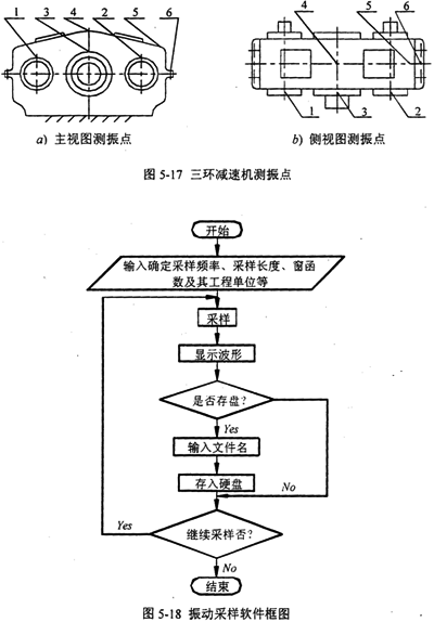 實驗采用壓電式加速度計測量三環(huán)減速機上特征點的振動加速度,并且將原型機與改進(jìn)型機的情況進(jìn)行比較;同時對采集的加速度信號進(jìn)行積分處理,求得特征點的振動速度,計算振動烈度,并且將原型機與改進(jìn)型機的情況進(jìn)行比較,從而確定減振效果。