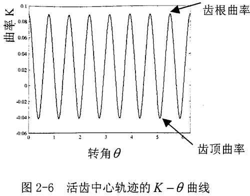 (1)由圖2-6中K-θ曲線可以看出,中心輪每一個齒在齒根處曲率最大,曲率半徑最小。沿著齒廓上升的過程中曲率減小到零后,繼續(xù)減小為負(fù)值。到達(dá)齒頂時,曲率最小。