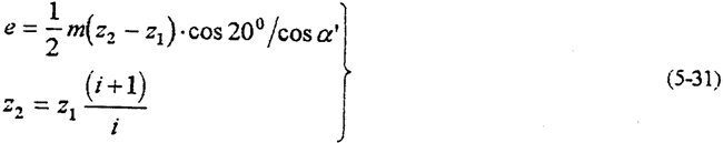 由上式知,當(dāng)齒數(shù)差Z2-Z1越小或傳動比i越大時,偏心距e越小;壓力角越大時,偏心距e越大,則選用的行星軸承尺寸大,齒板高速軸承孔徑也就大。圖5-17是傳動比、壓力角、以減速器行星軸承載荷的影響。由圖可見,傳動比的變化對減速器的動力性能影響極大;傳動比越大,則偏心距越小。由式(5-30)分析得,行星軸承載荷必須大。壓力角的變化,對行星軸承載荷影響小得多。