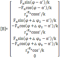 當對兩相平行軸擺線針輪減速器求解時,△φ2=180,第三塊環(huán)板因每輸出扭矩,其相應的Fn=0;而對三相平行軸擺線針輪減速器,△φ2=120,△φ3=240。