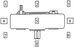 在減速器的噪聲測量中(見圖4.4),分別對減速器空間九個特定點*,在A計權(quán)網(wǎng)絡(luò)下測量其聲壓級的大小,表4.7中的數(shù)據(jù)為該減速器的平均聲壓級;在減速器的振動測量中,主要對輸入和輸出軸進行振動(位移、速度、加速度)測量以及分析,下表中的數(shù)為該減速器的最大位移量,即輸入軸的。