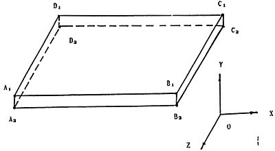 底板上上表面四個角點A1、B1、C1、D1和下表面四個角點A2、B2、C2、D2沿x向、y向和z向的平移自由度為零,旋轉自由度任意。如圖3-10所示。