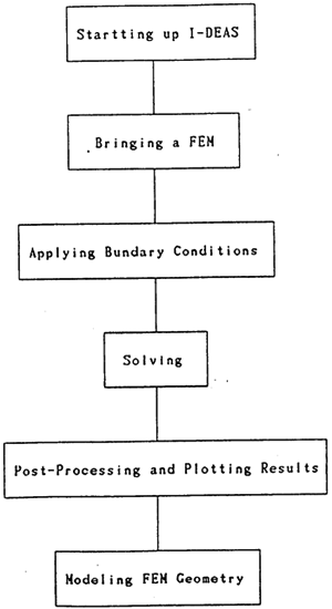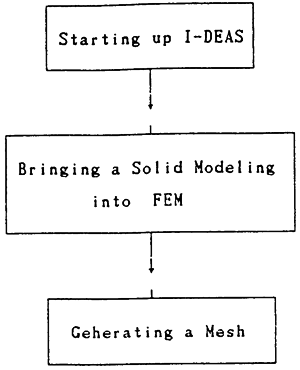 在SUN工作站上使用I—DEAS軟件中的有限元模塊(FE—Modeling—and—Analysis)對SHQ40箱體進行有限元分網,其具體操作規(guī)程如圖3-7示。
