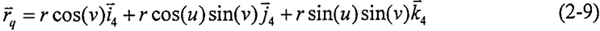 圓柱正弦活齒傳動(dòng)中的活齒為規(guī)則球體,則其齒面方程即為球面方程,活齒坐標(biāo)系如圖2-6 所示,活齒齒面方程用球面坐標(biāo)表達(dá)為: