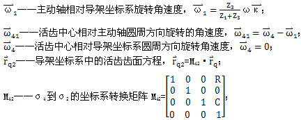 若采用雙圓弧滾道,則該雙圓弧正弦滾道的齒廓方程為(主動(dòng)軸為例):左齒面齒廓方程: