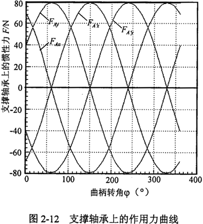 2.曲柄軸支撐軸承的作用力分析 根據(jù)力學(xué)原理,對于輸入同可得到下列方程式: