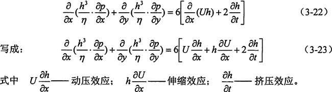 必須強調(diào)指出:上式的Reynolds方程是根據(jù)一系列假設(shè)推導出來的,適用于一般工況條件的潤滑計算。在特殊的工況條件下,當某些假設(shè)不能成立時,必須針對具體情況推導相應(yīng)的Reynolds方程形式。