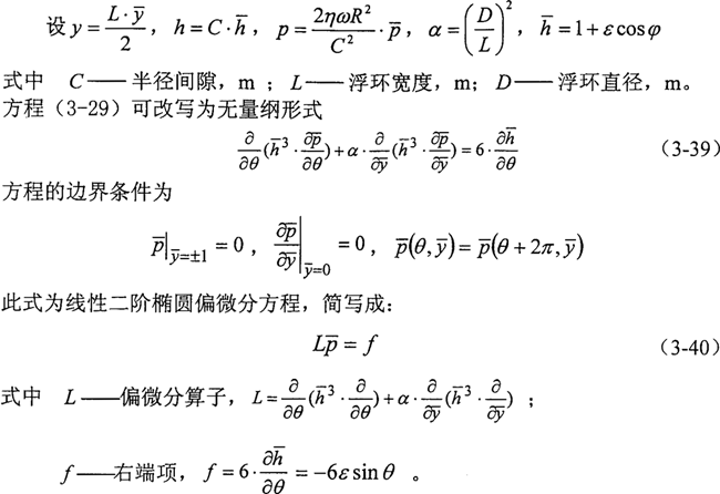 由于將有量綱方程化為無是綱形式后,方程形式主得簡單,便于計算,而獲得的結(jié)果又便于推廣到與此軸承相似的各類尺寸的軸承,故,有必要將雷諾方程無量綱化。