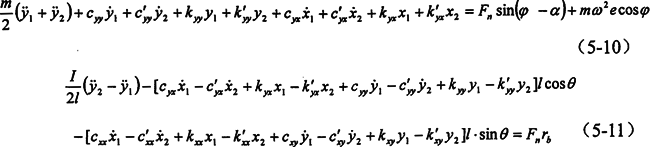 kxx、kxy、kyx、kyy、kxx′、kxy′、kyx′、kyy′——環(huán)板左、右支撐的油膜剛度系數(shù)。
