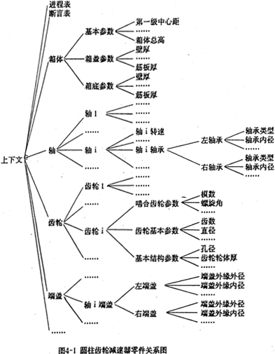 從圖4-1中衍生的圓往齒輪減速器設(shè)計(jì)專(zhuān)家系統(tǒng)的數(shù)據(jù)間的邏輯組織形式如圖4-2。