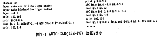 現(xiàn)在,各種計算機語言中,如PASCAL, FORTRAN, BASIC等均帶有圖語句。有諸如直線,圓弧,圓等基本指令(人工智能語言GCLISP versionl.0版因為沒有三角等計算函數(shù)的功能,所以沒有圓弧、圓等指令)。相應(yīng)的,各種計算機輔助繪圖軟件包,如IMB-PC上常用的AUTO-CAD, APOLLO工作站上使用的GPR均含有繪圖的基本單元,如繪制直線、點、中心線、折線、圓、圓弧等墓本圖形命令,進(jìn)一步的如APOLLO的S7K繪圖軟件包的三維實體造型等功能,其基本圖素如圓柱體、錐體、球體、立方體等;并都具有圖形平移、旋轉(zhuǎn)、縮小、放大等功能。但是,各繪圖軟件包一般都自成體系,比較難以通用。作者通過對這些軟件的分析,用LlSP編寫了一個比較通用的二維繪圖軟件包,在使用時,只要按所使用的軟件的相應(yīng)格式填寫,就可輸出相應(yīng)的繪圖命令。分別介紹如下: