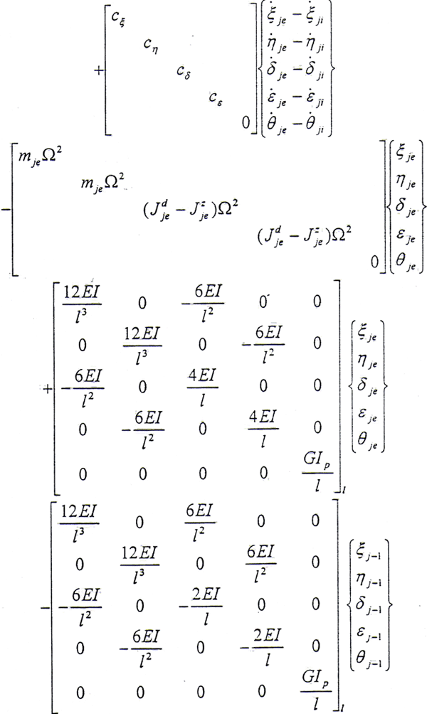 對(duì)于軸承—轉(zhuǎn)子系統(tǒng)而言,彎曲振動(dòng)和扭轉(zhuǎn)振動(dòng)是整個(gè)軸系振動(dòng)的兩個(gè)部分,以往在分析此類系統(tǒng)時(shí)往往把二者分割開來,原因是用來表征它們運(yùn)動(dòng)的廣義坐標(biāo)是解耦的,但在大型的軸承—轉(zhuǎn)子系統(tǒng)中加入了齒輪聯(lián)軸器之后,系統(tǒng)的彎曲振動(dòng)和扭轉(zhuǎn)振動(dòng)就耦合起來了,不能再把二者分割開來。