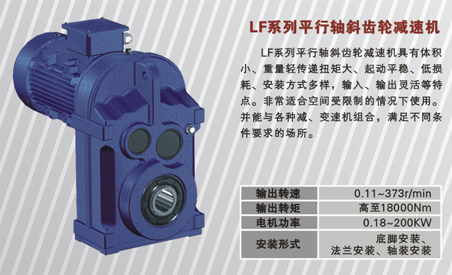 供應LF系列平行軸斜齒輪減速機LF系列平行軸斜齒輪減速機具有體積小、重量輕傳遞扭矩大、起動平穩(wěn)、低損耗、安裝方式多樣,輸入、輸出靈活等特點。非常適合空... 2011-4-13 |
